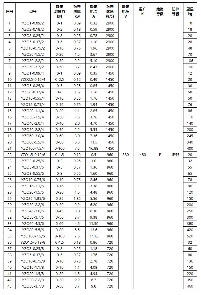 YZO系列三相异步振动电机具有以下优点: